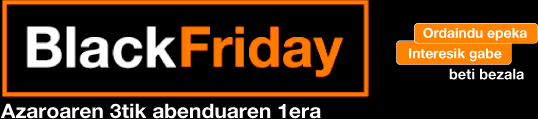 Zeharkako zergak sartu gabe. Gailuen eskaintza: Alta edo eramangarritasun berrietarako soilik eskuragarri, adierazitako tarifetan eta linea nagusirako soilik. Beste tarifa batzuetarako, kontsultatu terminalaren prezioa (www.orange.es edo 1414 telefonoa). Prezioek eta sustapenek balio dute indarrean egon arte, edo izakinak amaitu arte. Hemen adierazitako opariak kasu bakoitzean zehaztutako tarifen eta terminalaren kontratazioaren mende daude, betiere bezeroak kontratazioari uko egiten ez badio. 2 produktu edo gehiagoren eskaintza bateratuaren kasuan, bi produktuak batera erosiz gero bakarrik aplikatu ahal izango da prezioa, eta ez zaie une desberdinetako salmentei aplikatuko. Eskaintzak ezin dira metatu, kontrakorik adierazi ezean. Orangeren epekako salmentako gailuak eskuratuz gero, Orangen eta mugikor-tarifan eta Internetera sartzeko tarifan kontratatuta daukan tarifaren iraunkortasun-konpromisoa izango da terminalaren ordainketa osatzeko abonatu beharreko hileko kuoten kopurua bera. Eskaintza hau Orangeren baldintza orokorren mende dago, tarifa-baldintzen mende, eta, hala badagokio, epekako salmentaren baldintzen mende. Orangek bere gain hartzen du kopia pribatuarengatiko konpentsazioa, 1/1996 Legegintzako Errege Dekretuaren arabera (info gehiago orange.es webguneko Lege Informazioa atalean). Black Friday ikurrarekin markatutako gailuek beste deskontu gehigarri bat dute prezioan sartuta. SAMSUNG GALAXY S25 ULTRA 512GB 5G EE: Ordainketa Bakarra: 1.020,66€; PVPr 997,17€. SAMSUNG GALAXY A56 128GB 5G EE: Ordainketa Bakarra 320,66€.