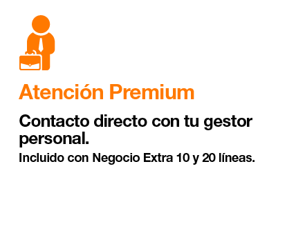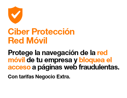 Todos los clientes de tarifas Fibra Pro 600 Mbps + llamadas, Fibra 1 Gbps + Llamadas + Orange TV 90 Canales y Fibra 1 Gbps + Llamadas + Orange TV 90 canales y todo el fútbol, podrán disfrutar por defecto del Beneficio Empresa Cloud y Protección de Dispositivos Orange. Todos los clientes de tarifas Go Empresa Ilimitado 2 podrán disfrutar por defecto de los Beneficios Empresa Legálitas Protección Jurídica Negocios Orange y Móvil de Sustitución (más info en la página de las tarifas Go Empresa). Los clientes con tarifa Negocio Base Plus podrán disfrutar del beneficio de TV con más de 90 canales: solo disponible para su uso privativo y residencial, restringido a espacios privados, quedando prohibido su uso comercial y/o su comunicación pública. No disponible para clientes que sean cafeterías, bares, restaurantes u hoteles (Horeca), ni para locales de apuestas o locales públicos similares. Contenidos susceptibles de modificación en función de las condiciones fijadas por los proveedores de dichos contenidos. Los clientes de las tarifas Negocio Extra podrán disfrutar por defecto de los Beneficios Empresa Legálitas Protección Jurídica Negocios Orange, y Cloud y Protección de Dispositivos Orange. Los clientes de las tarifas Negocio Extra 10 y 20 líneas, además, de Atención Personalizada Preferente. Legálitas Protección Jurídica Negocios Orange: servicio de asistencia jurídica, consultas legales, recuperación de impagados, aviso y tramitación de ayudas y subvenciones y evaluador de compliance, valorado en 778€/año, disponible hasta el 31 de marzo de 2026. Más info en https://www.legalitas.com/negocios-orange. Cloud y Protección de Dispositivos: Incluye almacenamiento ilimitado de archivos en la nube, antivirus (sujeto a las condiciones de licencia del fabricante), y soporte tecnológico 24x7. Ciber Protección (Red Móvil) de Orange: Servicio de protección en tiempo real de la navegación en internet desde dispositivos móviles, ofrece herramientas de protección frente a amenazas de malware y phishing, y suplantación de identidad, propias de un producto generalista. No garantiza protección absoluta. Atención Exclusiva Empresas: Servicio telefónico exclusivo para clientes empresa, con objetivo no contractual de resolución de incidencias no masivas en la primera llamada, o si requiere intervención, en menos de 12 horas hábiles. Atención Personalizada Preferente: Además de la atención exclusiva, los clientes de Love Empresa Crece 10 que llamen al 1471 serán atendidos directamente por un agente de la plataforma especializada para empresas, sin pasar por locución automática, y los clientes de Love Empresa Crece 20 que llamen al 1471 en horario laborable de lunes a viernes serán atendidos directamente por su Agente Personal. Promoción Router Livebox WiFi 7: contratando una Tarifa Negocio, se entregará al cliente un router Livebox WiFi 7 en cesión de uso sin coste adicional, sujeto a permanencia de 12 meses, debiendo el cliente devolver a Orange el router en buenas condiciones (salvo por el desgaste natural por el paso del tiempo), a la finalización o baja del servicio de incremento de