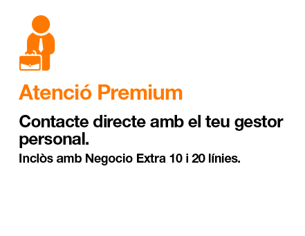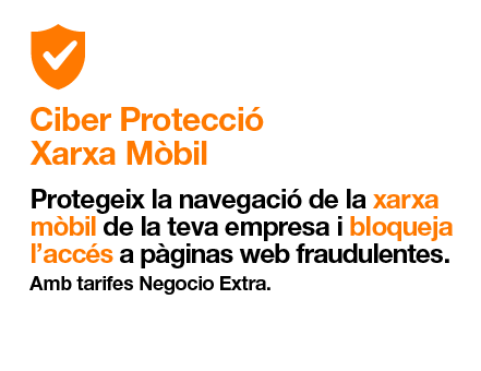 Tots els clients de tarifes Fibra Pro 600 Mbps + trucades, Fibra 1 Gbps + Trucades + Orange TV 90 Canals i Fibra 1 Gbps + Trucades + Orange TV 90 canals i tot el futbol, podran gaudir per defecte del Benefici Empresa Cloud i Protecció de Dispositius Orange. Tots els clients de tarifes Go Empresa Ilimitado 2 podran gaudir per defecte dels Beneficis Empresa Legálitas Protecció Jurídica Negocios Orange i Mòbil de Substitució (més info a la pàgina de les tarifes Go Empresa). Els clients amb tarifa Negocio Base Plus podran gaudir del benefici de TV amb més de 90 canals: només disponible per al seu ús privatiu i residencial, restringit a espais privats, quedant prohibit el seu ús comercial i/o la seva comunicació pública. No disponible per a clients que siguin cafeteries, bars, restaurants o hotels (Horeca), ni per a locals d'apostes o locals públics similars. Continguts susceptibles de modificació en funció de les condicions fixades pels proveïdors d'aquests continguts. Els clients de les tarifes Negocio Extra podran gaudir per defecte dels Beneficis Empresa Legálitas Protecció Jurídica Negocios Orange, i Cloud i Protecció de Dispositius Orange. Els clients de les tarifes Negocio Extra 10 i 20 línies, a més, d'Atenció Personalitzada Preferent. Legálitas Protecció Jurídica Negocios Orange: servei d'assistència jurídica, consultes legals, recuperació d'impagats, avís i tramitació d'ajudes i subvencions i avaluador de compliance, valorat en 778€/any, disponible fins al 31 de març de 2026. Més info a https://www.legalitas.com/negocios-orange. Cloud i Protecció de Dispositius: Inclou emmagatzematge il·limitat d'arxius al núvol, antivirus (subjecte a les condicions de llicència del fabricant), i suport tecnològic 24x7. Ciber Protecció (Xarxa Mòbil) d'Orange: Servei de protecció en temps real de la navegació a internet des de dispositius mòbils, ofereix eines de protecció davant amenaces de malware i phishing, i suplantació d'identitat, pròpies d'un producte generalista. No garanteix protecció absoluta. Atenció Exclusiva Empreses: Servei telefònic exclusiu per a clients empresa, amb objectiu no contractual de resolució d'incidències no massives en la primera trucada, o si requereix intervenció, en menys de 12 hores hàbils. Atenció Personalitzada Preferent: A més de l'atenció exclusiva, els clients de Love Empresa Creix 10 que truquin al 1471 seran atesos directament per un agent de la plataforma especialitzada per a empreses, sense passar per locució automàtica, i els clients de Love Empresa Creix 20 que truquin al 1471 en horari laboral de dilluns a divendres seran atesos directament pel seu Agent Personal. Promoció Router Livebox WiFi 7: contractant una Tarifa Negocio, es lliurarà al client un router Livebox WiFi 7 en cessió d'ús sense cost addicional, subjecte a permanència de 12 mesos, havent de retornar el client a Orange el router en bones condicions (excepte pel desgast natural pel pas del temps), a la finalització o baixa del servei d'increment de velocitat per qualsevol causa, o en cas contrari, se li cobrarà una quantitat de fins a 82,60€. En cas d'incompliment de la permanència, el client haurà d'abonar una penalització màxima de 160€. Incompatible amb Centralita.