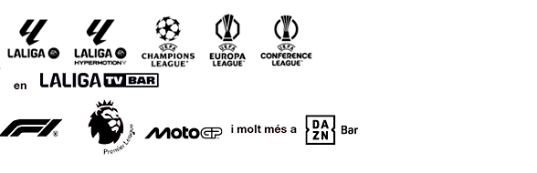 Condicions aplicables Temporada 2025-2026 tret que s'estableixi un altre període d'aplicació. Orange TV Bares: Dirigida únicament a bars, restaurants i cafeteries (NIF/CIF), no situats en hotels, ni locals d'apostes, en zones de cobertura directa, que tinguin una tarifa Love Empresa Impulsa o Crece o tarifa Empresa Impulsa o Crece. No es permet el seu ús en terrasses obertes (només aquelles tancades per almenys 3 costats), ni en espais oberts, ni per a la seva visualització en locals contigus; tampoc es permet el seu ús en centres comercials (o espais equivalents), o espais públics, incloent en l'exterior o interior d'estadis esportius. Inclou els continguts i canals indicats en https://www.orange.es/empresas/servicios/tv-bares, i l'oferta de continguts multiesport de DAZN disponible a cada moment. Preus aplicables fins al 31 de desembre de 2025 i segons la localitat en la qual es trobi el local (menys de 10.000 habitants: 285€/mes; 10.000 – 45.000 habitants: 310€/mes; 45.0001 – 250.000 habitants: 330€/mes; més de 250.000 habitants: 355€/mes), subjecte al fet que el client es mantingui donat d'alta en una tarifa Love Empresa Impulsa o Creix o tarifa Empresa Impulsa o Creix. En cas de canvi de titularitat, el preu aplicable serà el vigent en aquest moment. Despeses d'instal·lació (150€) bonificats, sempre que el client es mantingui donat d'alta en Orange TV Bares durant almenys 6 mesos des de la seva activació; en cas de baixa abans del venciment d'aquest termini de 6 mesos, Orange facturarà al client la part proporcional de les despeses d'instal·lació no amortitzats, calculada en funció del temps que li resti al client per complir d'aquest termini. La baixa en el lot Love Empresa o lot Empresa comportarà també la baixa automàtica en Orange TV Bares. Orange TV Bares Hotels i Orange TV Locals d'Apostes subjectes a condicions especials, consulti preu i condicions al punt de venda, amb el seu assessor comercial o en el 1471. Preus imposats indirectes no inclosos.