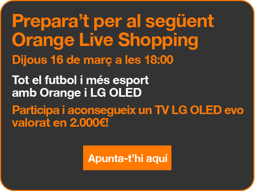 Orange comprovarà que el client ha realitzat l'acte comercial i ha adquirit smartphone, objecte connectat o accessori, abans de bescanviar el codi pel cupó. El codi és únic per client i està limitat a 400 codis en total. Aquests codis només es podran utilitzar de manera total o parcial en un màxim de 3 compres en botiga (en funció del valor de l'adquirit). Promoció aplicable una única vegada per client, per NIF de contractació. Més informació a la teva Botiga Orange. Promoció incompatible amb la promoció Compramos Tu Móvil.