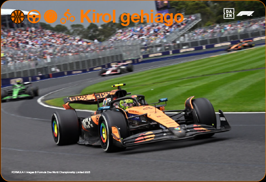 - DAZN plataformak sarbidea ematen du kirol edukietara, automobilismoa eta motoziklismoa esaterako, FORMULA 1®, MotoGPTM, SUPERBIKES, etab. Lehiaketekin. Kontratatutako tarifaren arabera: Futbolak hurrengo tarifekin Fútbol y Cine con 1 línea, Elige 1 edo Elige 2 ; Fútbol y Cine 2 líneas, Elige 1 edo Elige 2 edo Fibra y Fútbol sarbidea emango dute DAZN Fútbolera edo Fútbol y Cine 2 líneas, Elige 3 edo Elige Todo; Fútbol y Cine 4 líneas, Elige 3 edo Elige Todo edo Orange Todo kontratatzen dutenek sarbidea izango dute DAZN PROra.