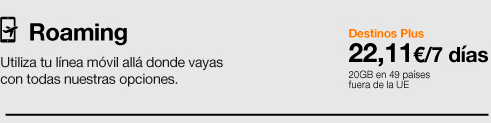 - b) hasta 10 líneas móviles con llamadas a fijo y móvil nacionales y navegación a máx. velocidad -hasta 1,6Gb- ilimitadas (de las cuales hasta 3 líneas puedes ser líneas TúYo). Los minutos y datos podrán utilizarse en Roaming Zona 1 -Unión Europea, Islandia, Liechtenstein, Noruega, Gibraltar, Ucrania y Moldavia - hasta un máximo de 100GB -superados los límites se tarificará a 0,0015€/MB-. Además, incluye 2 GB diarios a los 49 países incluidos en la oferta de Orange Roaming Destinos Plus (Albania, Andorra, Arabia Saudí, Argentina, Bielorrusia, Bosnia, Brasil, Canadá, Chile, China (incluido Hong Kong), Colombia, Corea Del Sur, Costa Rica, Ecuador, Egipto, El Salvador, Emiratos Árabes, Estados Unidos, Filipinas, Georgia, Guatemala, Honduras, India, Indonesia, Israel, Japón, Jordania, Kenia, Macedonia, Marruecos, México, Moldavia, Mónaco, Montenegro, Nicaragua, Omán, Paraguay, Perú, Puerto Rico, Reino Unido, República Dominicana, Senegal, Serbia, Suiza, Suráfrica, Turquía, Ucrania y Vietnam.), aplicando superado el límite la tarifa diaria a razón de 7,96€, pudiendo disfrutar de 2GB durante 24 horas en cualquiera de los países Destinos Plus. Las líneas TúYo incluyen una solución con una línea móvil, geolocalización, control parental y control horario. El menor/usuario de la línea podrá navegar desde su dispositivo entre las 8:00 y las 23:00 y solo durante el horario seleccionado según la modalidad de TúYo: Inicial hasta 3 horas al día, Medio hasta 4 horas (1,77€ más al mes por cada línea con TúYo Medio contratado) y Avanzado hasta 5 horas (por 3,54€ más al mes por cada línea con TúYo Avanzado contratado). Fuera del horario seleccionado la navegación se bloqueará y solo podrá hacer y recibir llamadas. Para poder navegar, el dispositivo utilizado ha de tener la app TúYo descargada y activa, sino navegará a 64kbps. Compatible solo con dispositivos Android 11 o superior y para el adulto también para iOS 15 o superior. Máx de 1000 SMS.