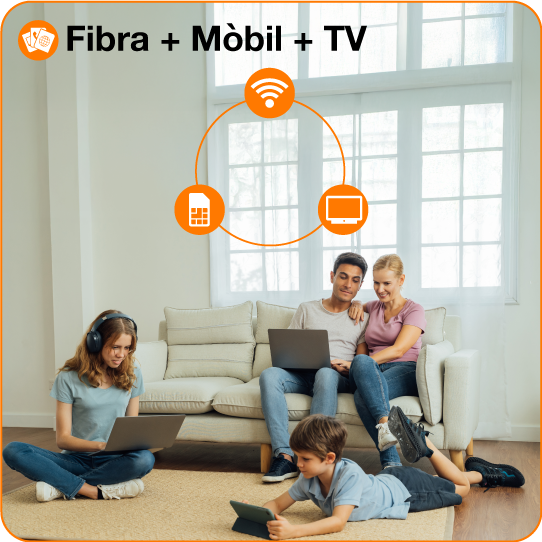 - Fibra 2 línies il·limitades: Per 79€ al mes inclou fibra simètrica 1Gb amb router Wifi 6 (Wifi 7 sota cobertura directa), dues línies mòbils amb trucades i dades il·limitades a una velocitat de navegació de fins a 1,6 Gbps, a gaudir a Espanya entre totes les línies del lot i línies addicionals associades al lot contractat i el servei de Ciber Protecció d'Orange.